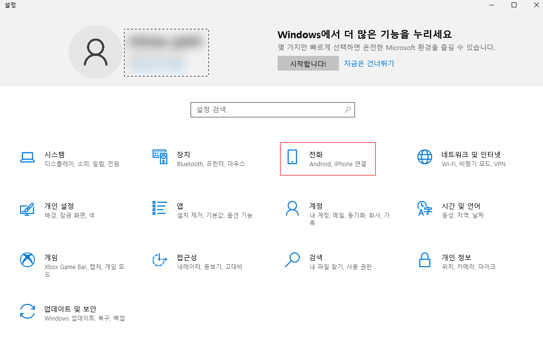 설정 창으로 이동하였다면, "전화" 라는 항목을 선택하여 준다.