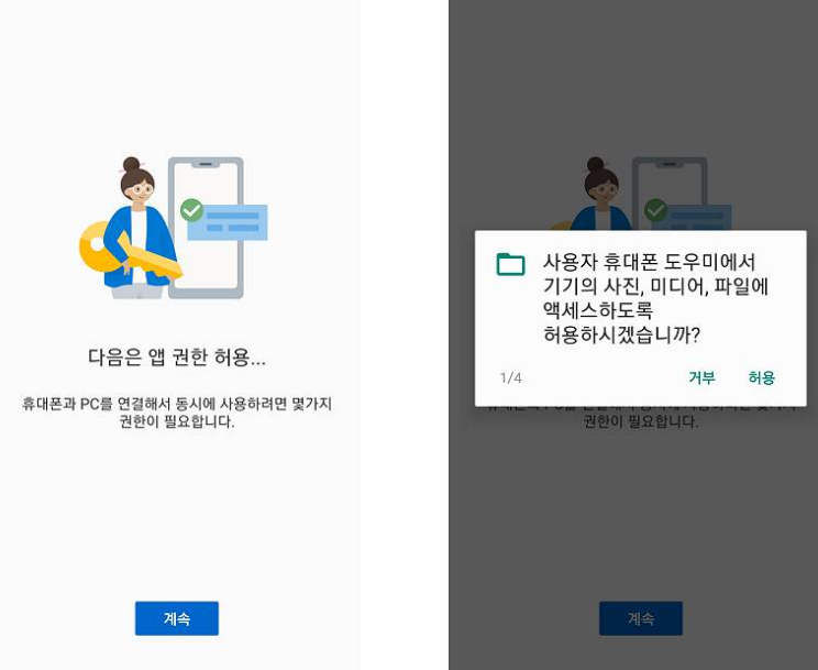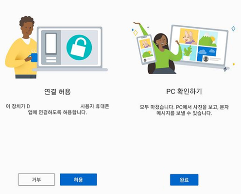 준비허용하였다면, 단 스마트폰과 윈도우의 계정은 서로 같은 자신의 계정으로 사용하여야 하고 PC에서 준비가 되었다면 아래의 연결허용에 체크해준다면 연결이 끝나게된다.