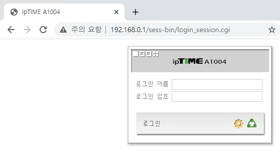 로그인 이름과 암호를 입력해야 하는데, 한번도 설정한 적이 없는 공유기라면 기본값은