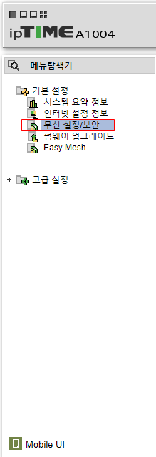 무선 설정/보안 메뉴로 이동한다.