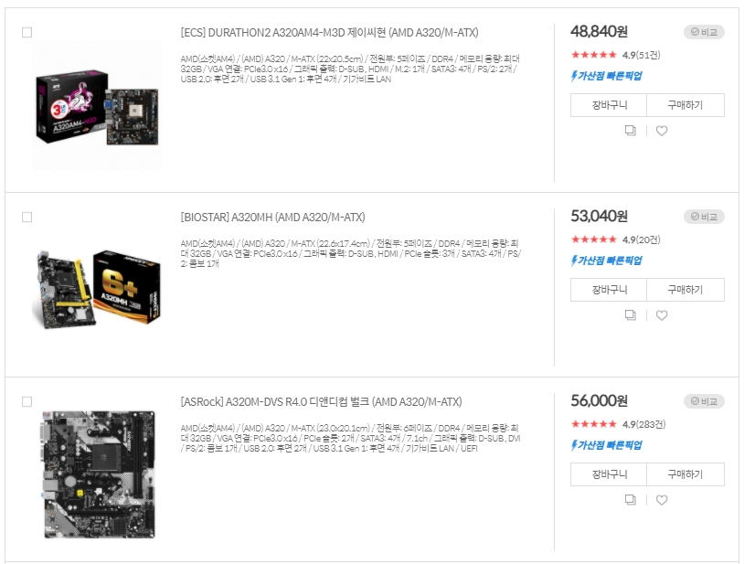 AMD의 경우 소켓이 AM4로 모두 다 같은것처럼 보이지만 AMD의 경우 바이오스가 지원되지 않는경우가 있으므로 반드시 호환이 되는지 제품의 상세페이지나 판매자에게 꼭 문의하여 호환이 가능한지 문의한 뒤, 구입하도록 하자.