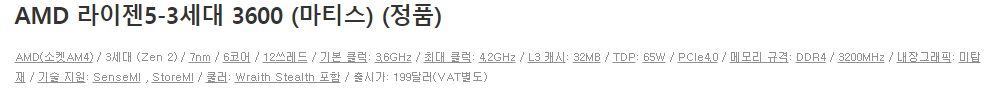 필자는 예시로 AMD 모델의 3세대 모델인 AMD 3600 마티스 모델을 기준으로 설명하도록 하겠다.