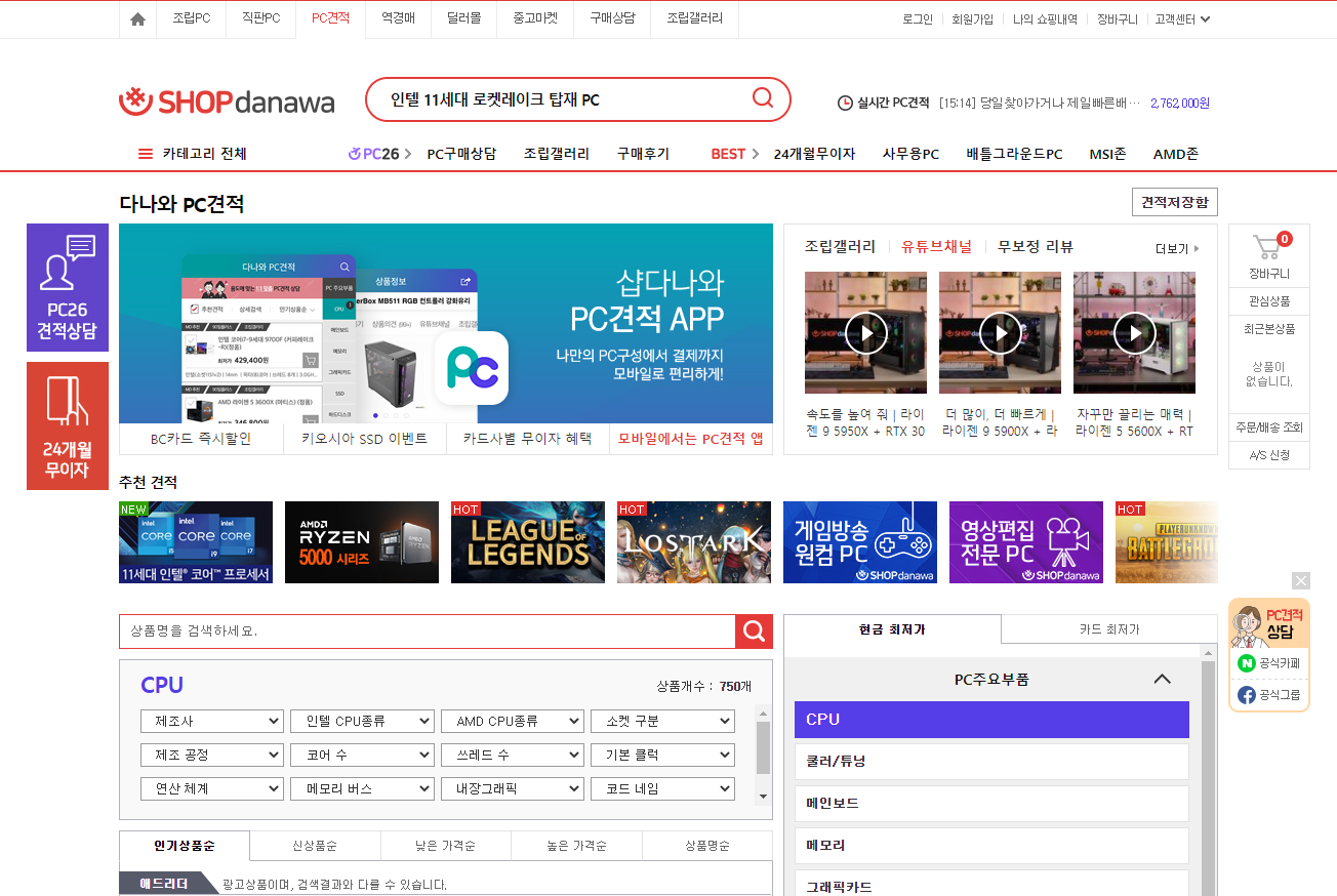 다나와로 예를 들어 위의 링크를 이동한다면 위와같이 화면이 확인되는데