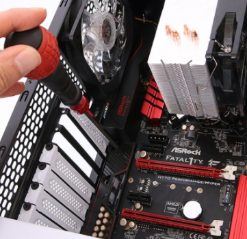 후에, CPU쿨러를 위와같이 메인보드에 잘 안착시켜준 뒤, 위의 양쪽의 상하좌우 의 나사를 드라이버로 조여주면 CPU쿨러 결합도 끝이난다.