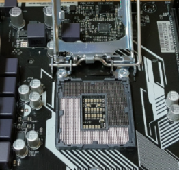 위와같이 들어올렸다면 AMD와는 반대로 인텔은 메인보드에 핀이 있으므로 똑같이 조심하여야 한다,