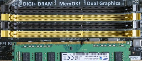 위의 슬롯을 메모리와 대조하여 보면 홈이 파여있는 부분이 있는데 해당부분을 꼭 체크하여 슬롯의 양옆의 플라스틱 걸쇠를 바깥방향으로 풀어준뒤 장착하면 자연스레 플라스틱걸쇠가 메모리에 붙게 된다.