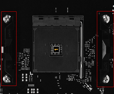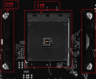 아래의 부분을 드라이버를 통해 나사를 풀어 쿨러를 그 위에 얹어 조여주면 끝이난다, 혹여 CPU쿨러가 한번이라도 사용되었던 중고거나 아니면 번들쿨러가 아닌 사제쿨러를 이용하는것이라면 반드시 서멀구리스를 도포하여야만 한다.