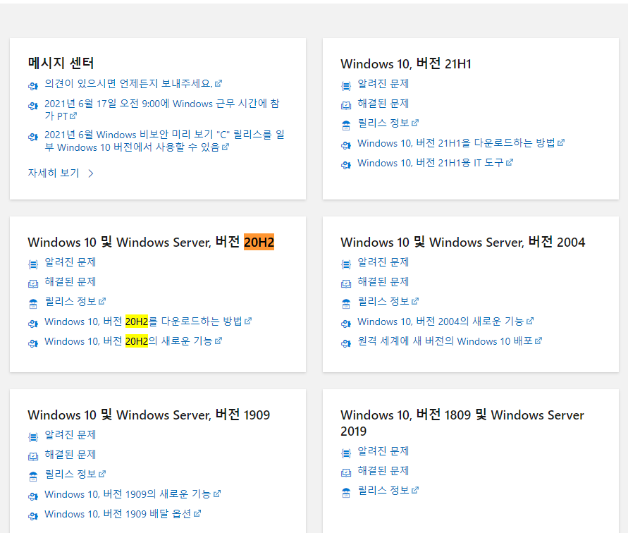 https://docs.microsoft.com/ko-kr/windows/release-health/