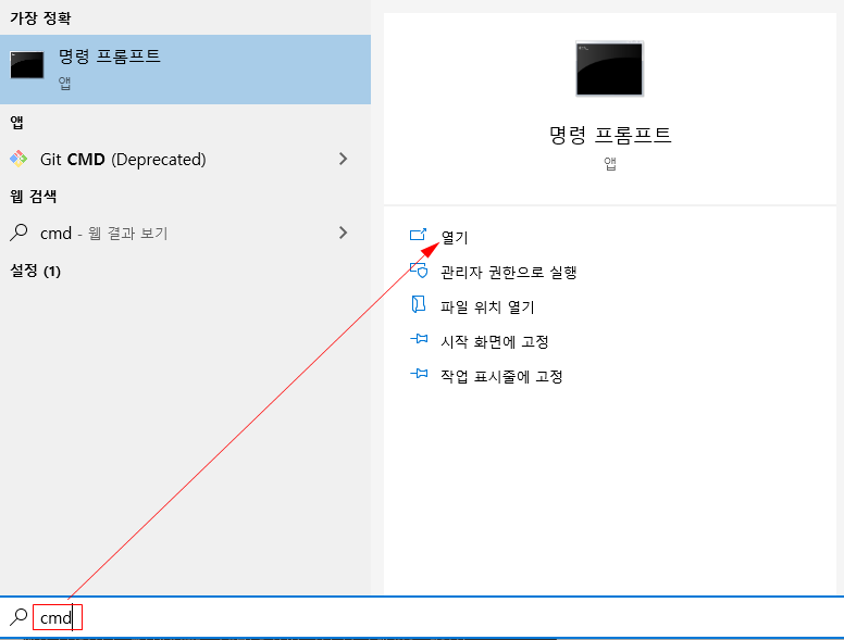 윈도우 내 도스 명령어창을 띄워주도록 한뒤,