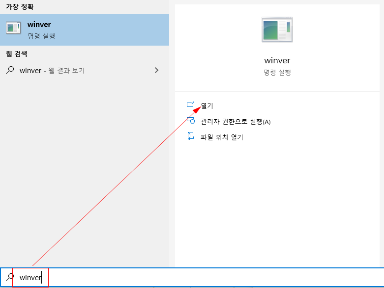 키보드의 윈도우키 버튼을 눌러 winver 을 입력하도록 한다.