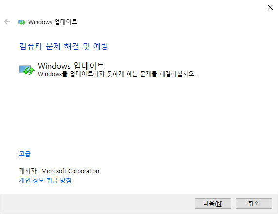 윈도우 업데이트 문제 해결사의 실행