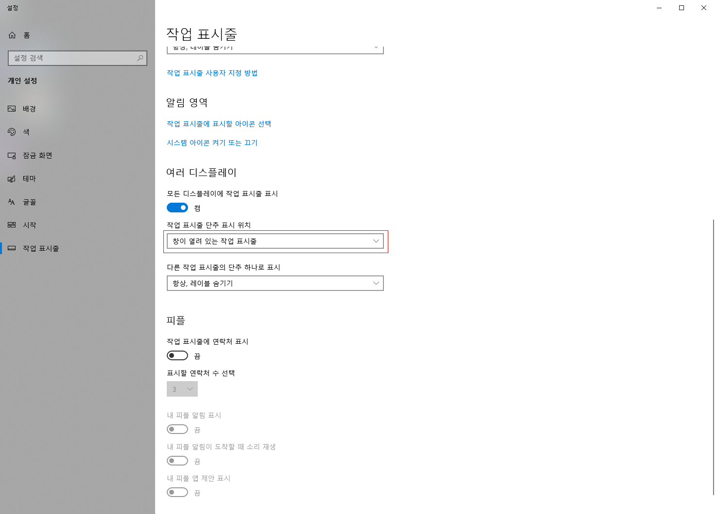 작업 표시줄 설정 버튼을 클릭하여 작업 표시줄 관리 화면으로 이동한다.