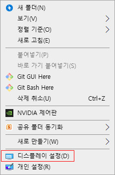 바탕화면에서의 우클릭을 눌러 "디스플레이 설정" 버튼을 누른다.