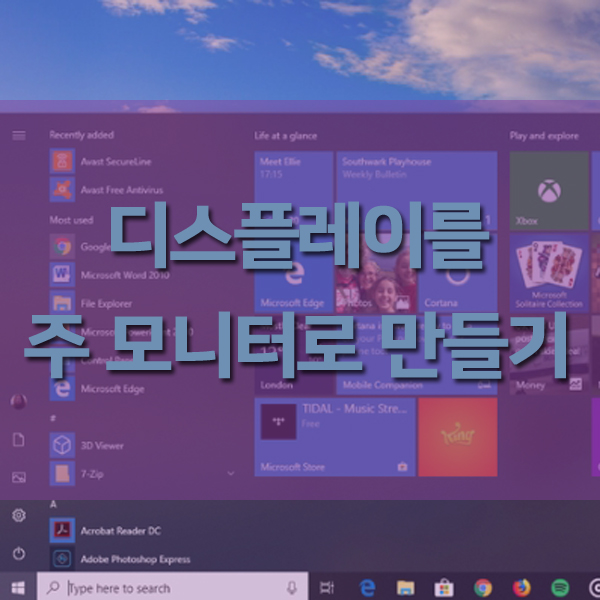 위의 항목에 적혀있는 "이 디스플레이를 주 모니터로 만들기" 항목을 체크하여 준 뒤, 체크한다면 해당 화면이 주 모니터로 변경이 되면서 주모니터의 변경은 시작버튼 부터 바탕화면의 아이콘들이 전부 메인모니터로 이동된다.