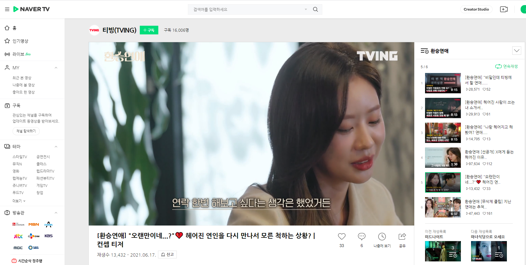위의 화면은 네이버TV 의 도메인주소입니다 네이버 TV에서도 도메인의 입력시 영상을 자동으로 추출하여 다운로드가 이뤄지며 꼭 영상 대표 플랫폼인 유튜브나, 네이버가 아닐지라도 영상에 도메인주소 URL이 매칭되어있다면 다운로드가 가능합니다