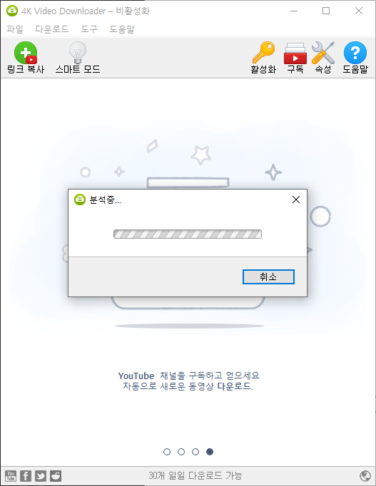 하루에 다운로드 받을 수 있는 영상의 갯수는 30개로 제한되어있으며 그 이상의 영상이나 음악을 다운로드 하고자 한다면 별도 구독을 진행하여야만 다운로드가 가능합니다