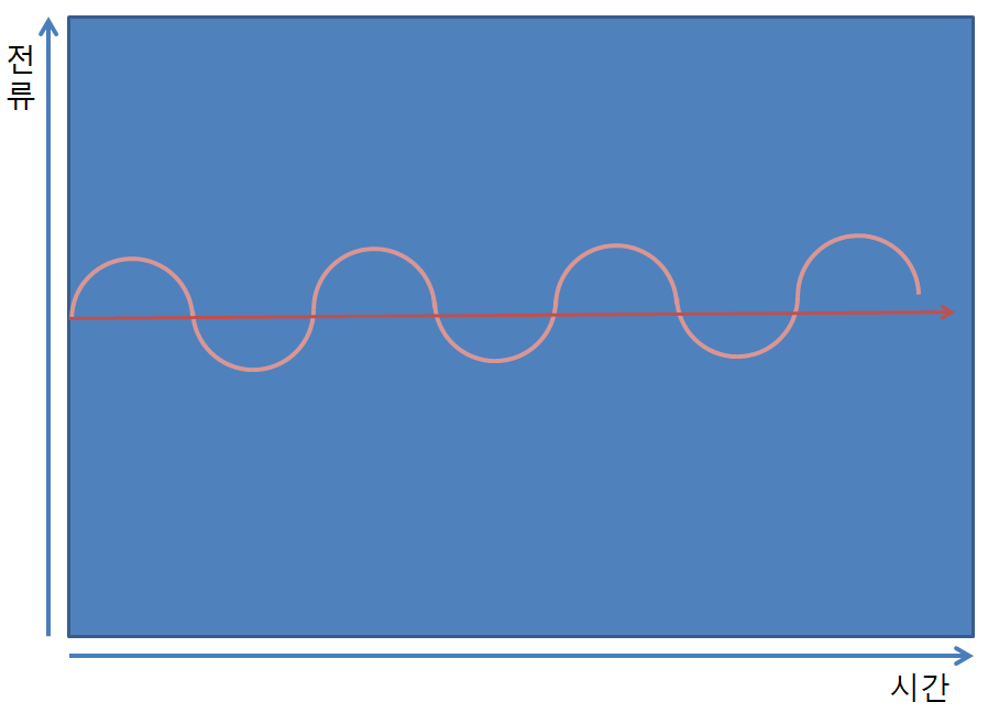 교류란 (AC, Alternating Current) 의 약자로 직역하자면 교대로 흐른다라는 의미로 시간에 따라 크기와 방향이 주기적으로 변화가 생기는 전류를 말한다, 전압의 크기와 방향의 변화가 생기는데 어떻게 에너지가 전달 될 수 있는지를 쉽게 설명하자면 전자는 방향만 변화하되, 줄지어 움직인다고 생각하면 되겠다. 때에 따라 전압이 0이 되는경우도 있으며 이 경우에는 에너지가 실제 0이 되는경우도 있다 이 교류에서 극성이 변화 하는 획수를 우리는 주파수라고 하며 이를 표기할 때 사용하는 측정단위는 Hz(헤르츠) 가 된다.