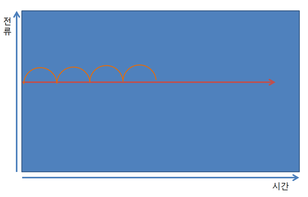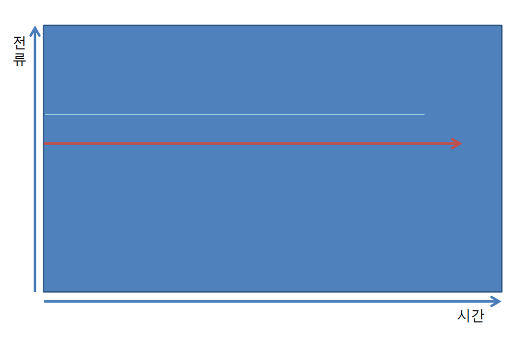 직류란 (DC, Direct Current) 의 약자로 직역하자면 바로흘러온다는 의미로 시간이 흐름에 따라 크기와 방향은 일정하게, 극성의 변함이 없는 전류를 말한다.