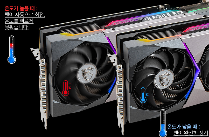 두번째, 팬이 상대적으로 도는횟수가 줄어들기 때문에 팬이 돌아가는 베어링과 팬의 수명이 연장된다 즉 팬이 계속하여 돌면 GPU의 온도는 보다 낮아지게 되겠으나 궂이 온도조정이 불필요한 경우에도 팬이 구동된다면 한번이라도 더 돌게되는 셈이니 팬또한 그래픽카드의 구성품이니 내구성이 더 좋다고 봐야겠다.