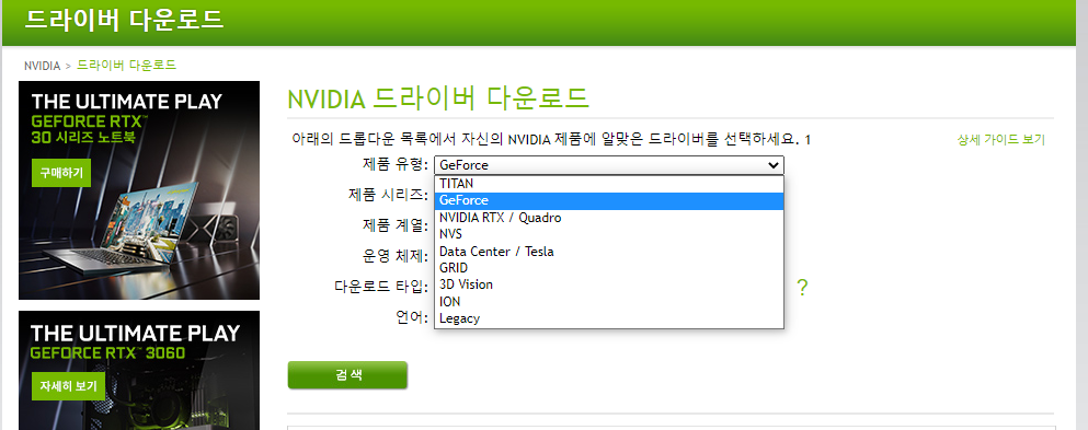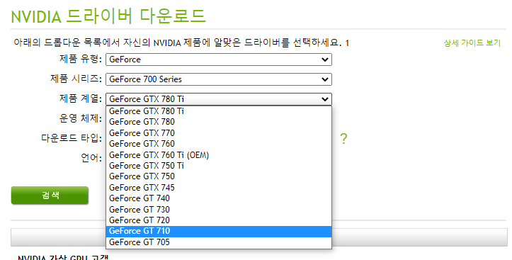 NVIDIA 드라이버 다운로드