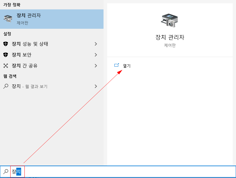 윈도우 키를 눌러 "장치 관리자" 를 확인하도록 한다.