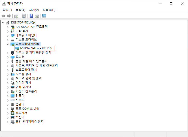 필자는 NVIDIA 사의 지포스 GT 710 모델을 사용중이며 위의 모델 기준으로 재 설치하는방법을 안내하도록 한다.