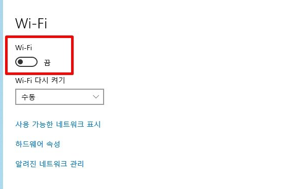 잘 사용하였는데 갑자기 와이파이 아이콘이 안보이는경우