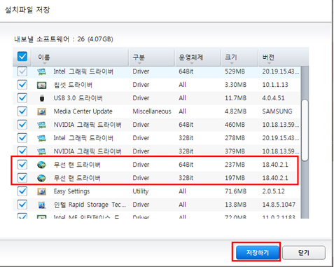 위의 프로그램을 설치하여 자신의 모델을 찾은 뒤, 드라이버 설치시에 무선 랜카드 드라이버만 설치해준다면, 나머지는 와이파이 환경에서 자동으로 설치하게 된다.