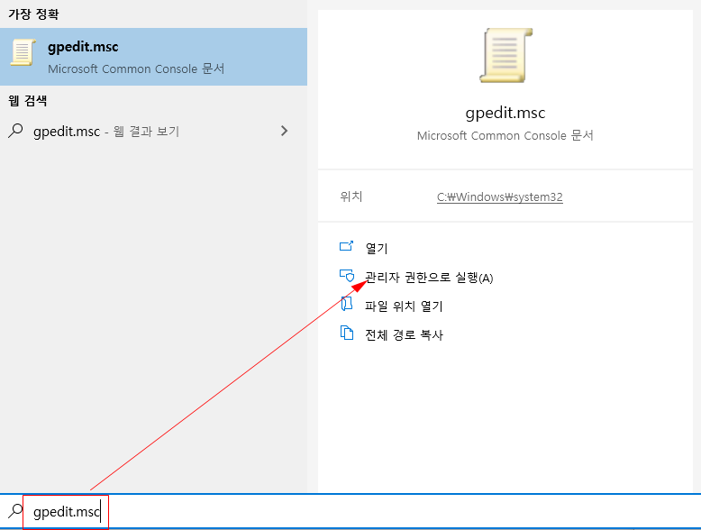 로컬 그룹 정책 편집기로 이동하여 값을 수정해야 한다, 윈도우 키를 누른 뒤, gpedit.msc 를 입력하여 값을 편집하도록 한다.