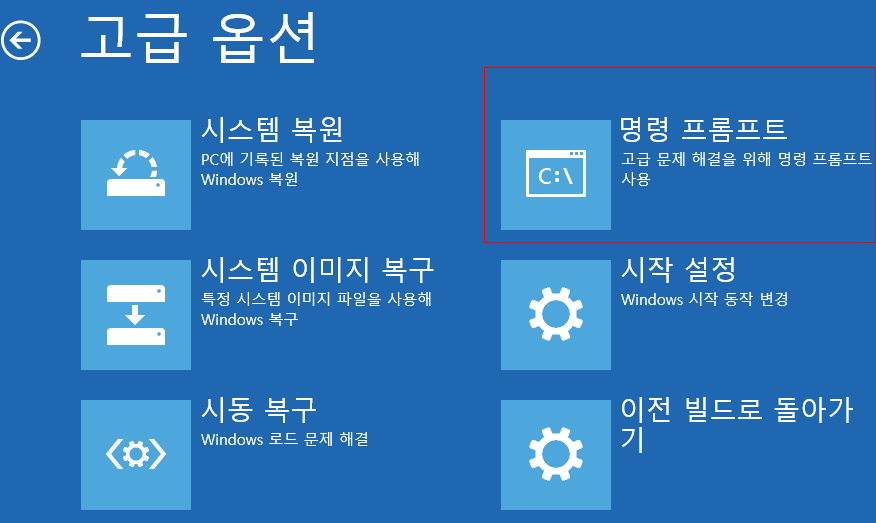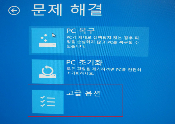 포맷 USB가 준비되었다면 복구 화면으로 이동하도록 한다.