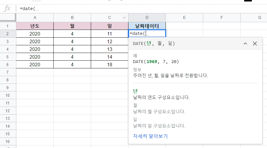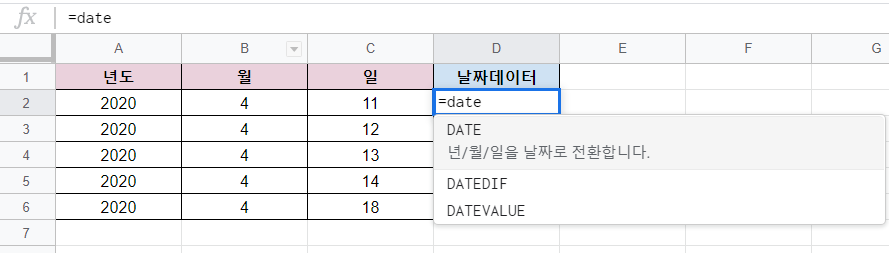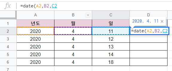 여기서 사용될 함수는 DATE 함수입니다.