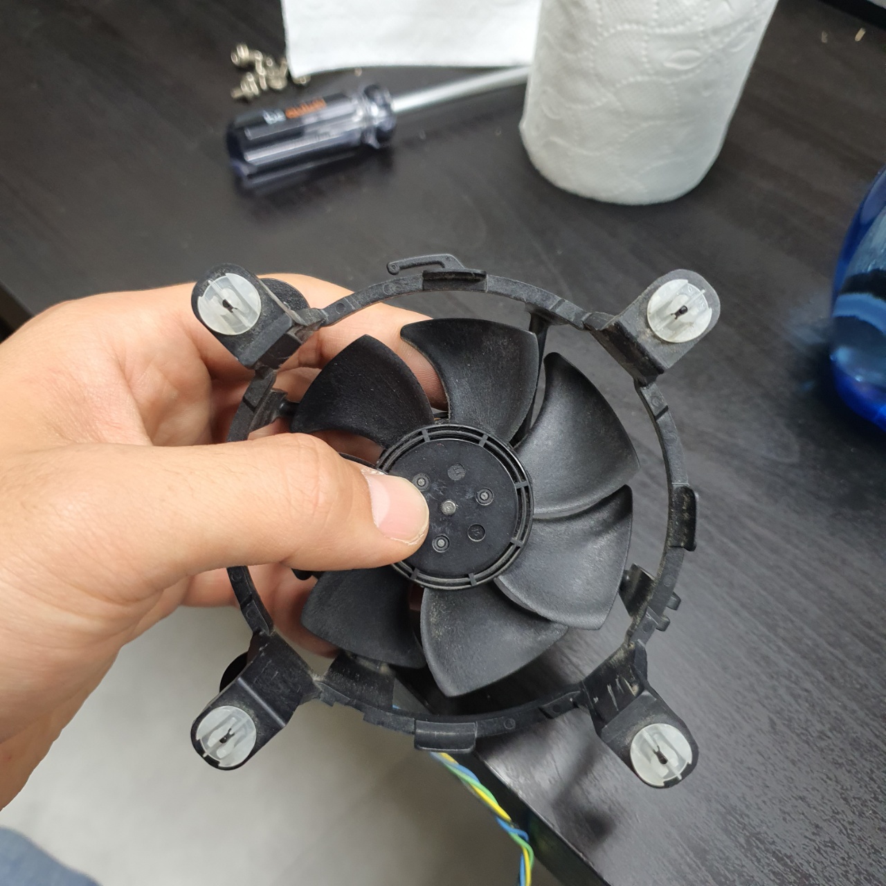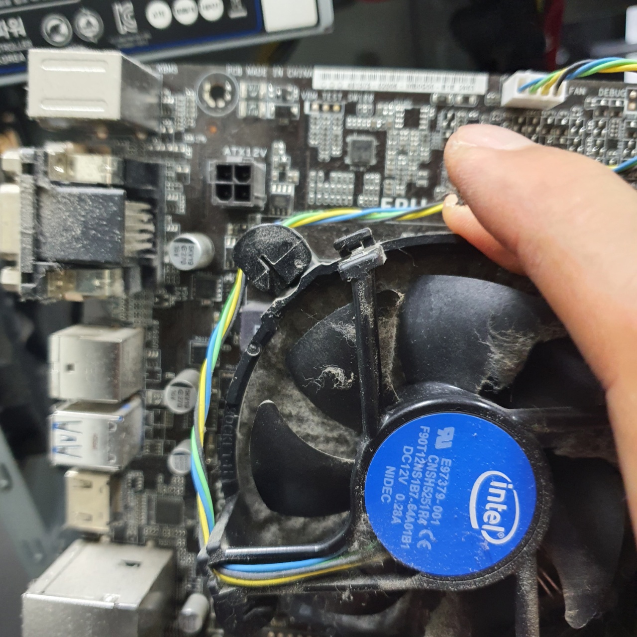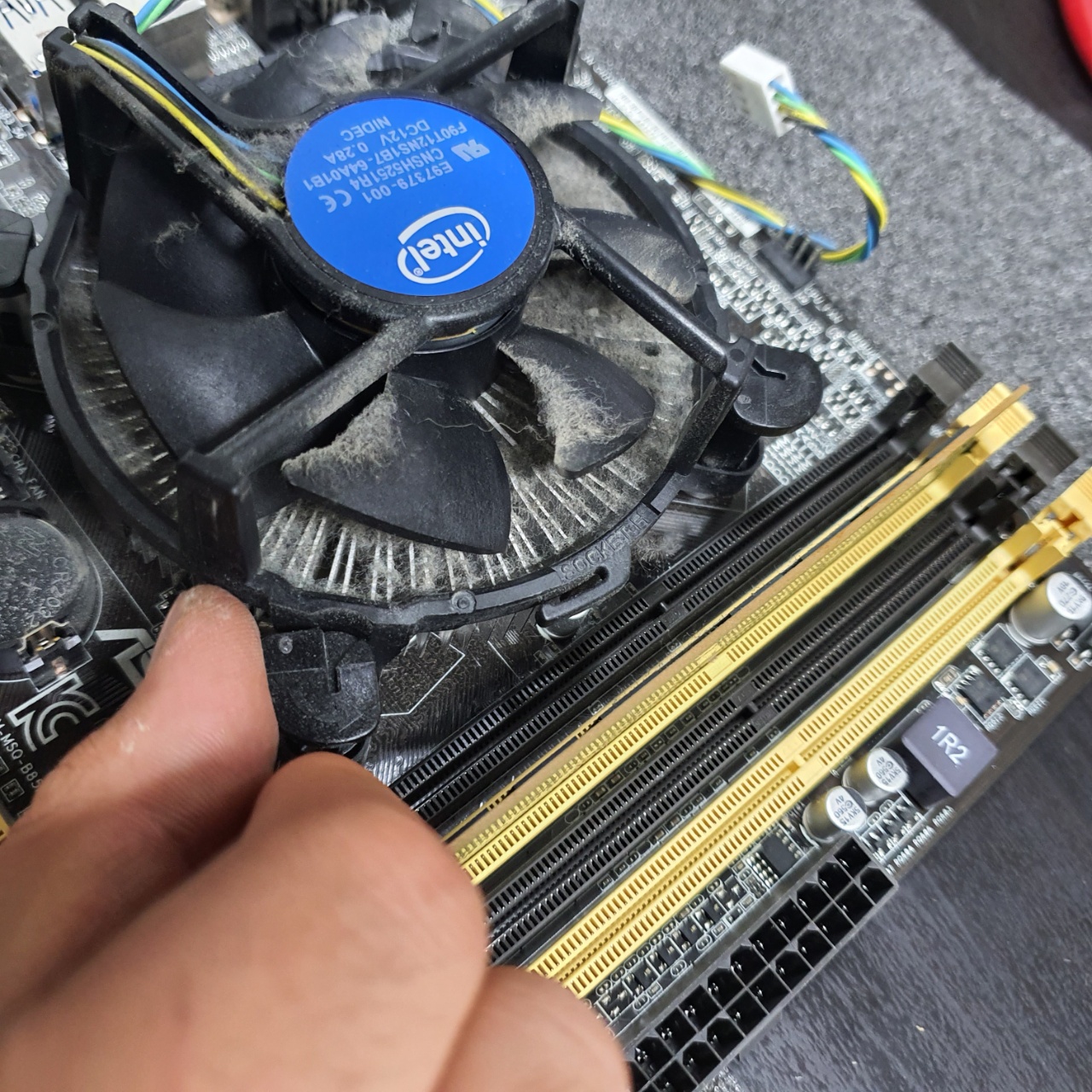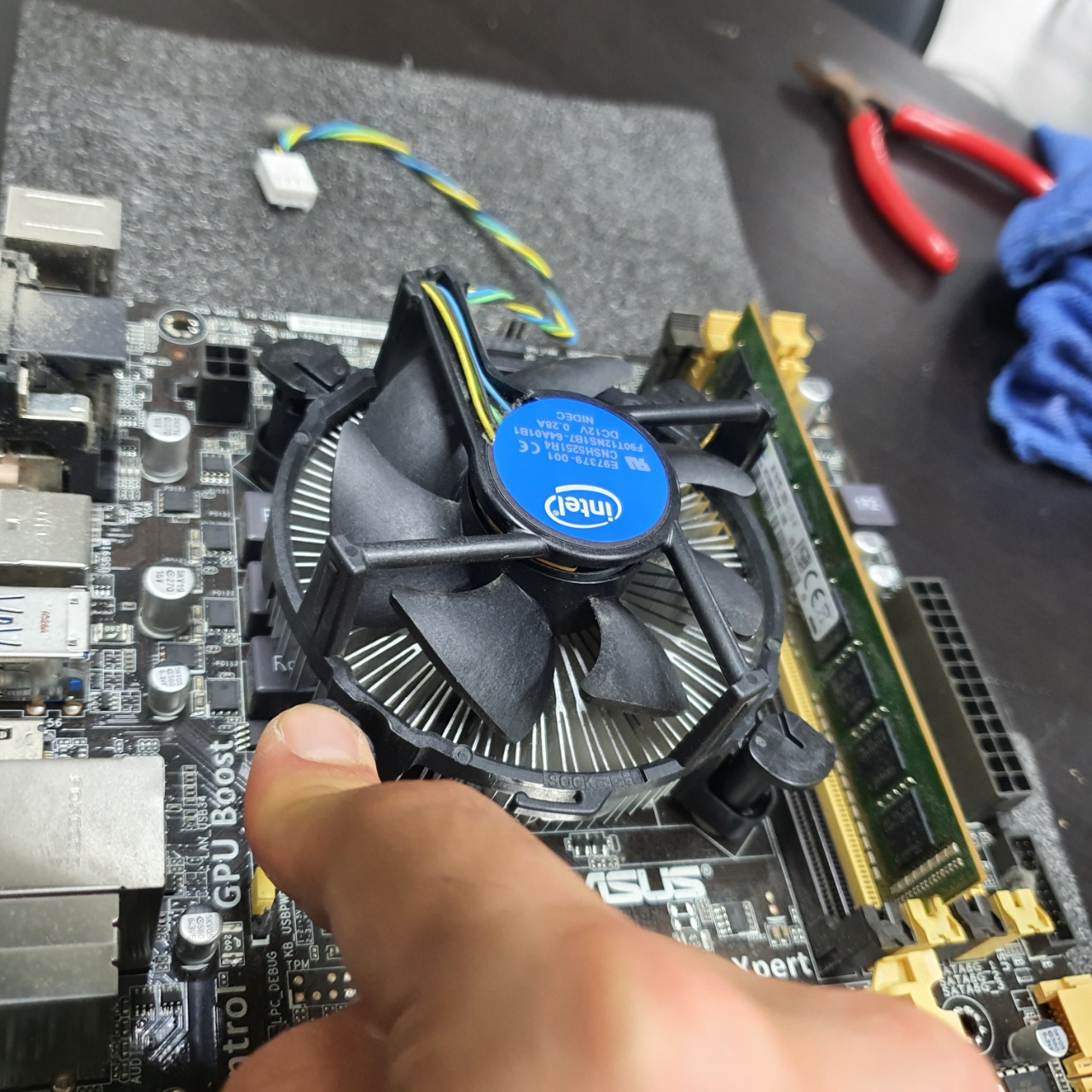 다시 연결해준 다음, CPU와 맞닿는 부분을 휴지로 한번더 닦아주면 된다.