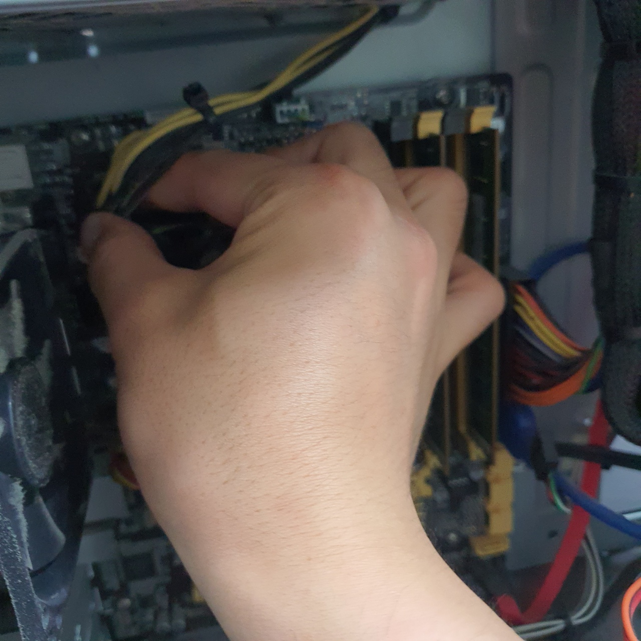 CPU팬 구동 핀을 뽑아준다.