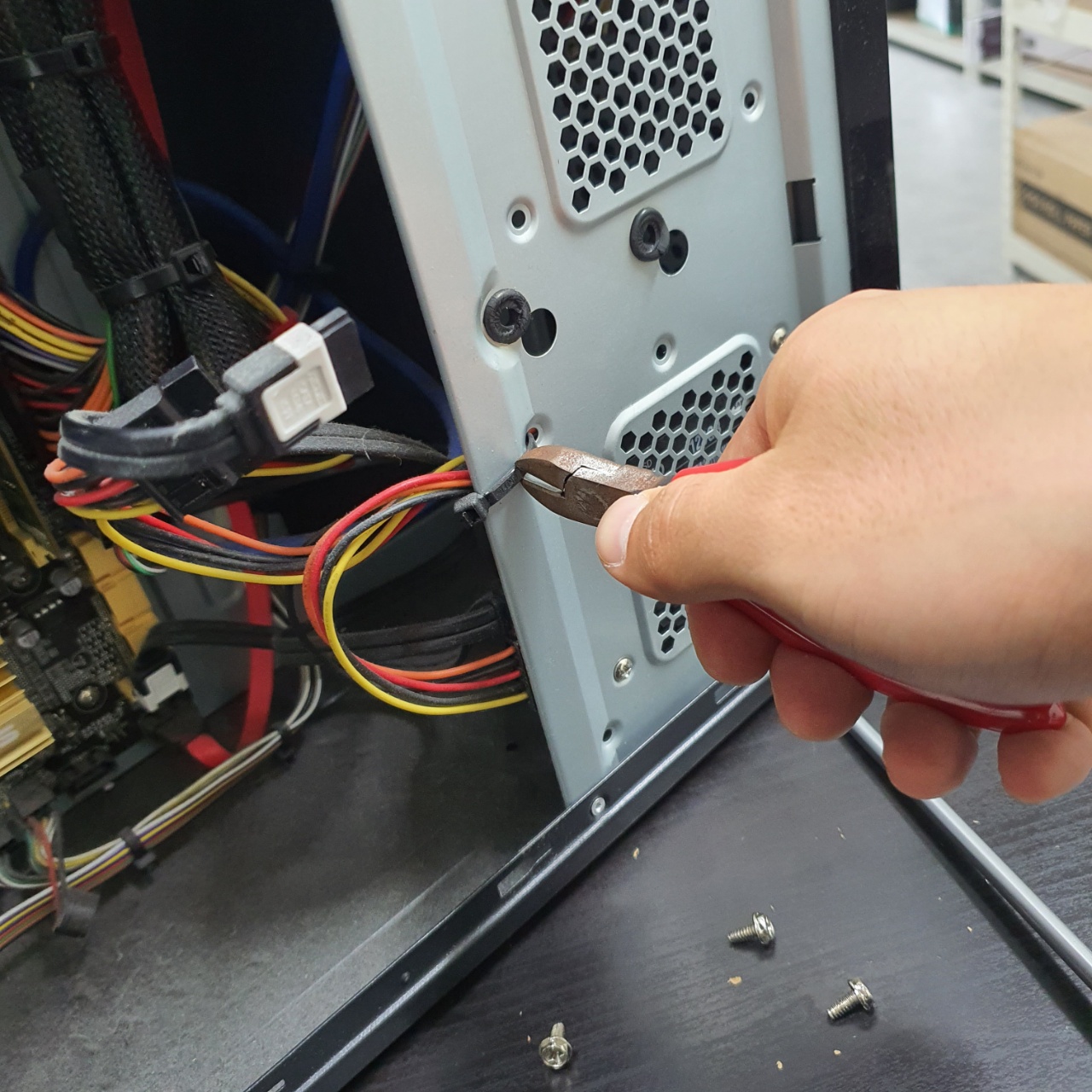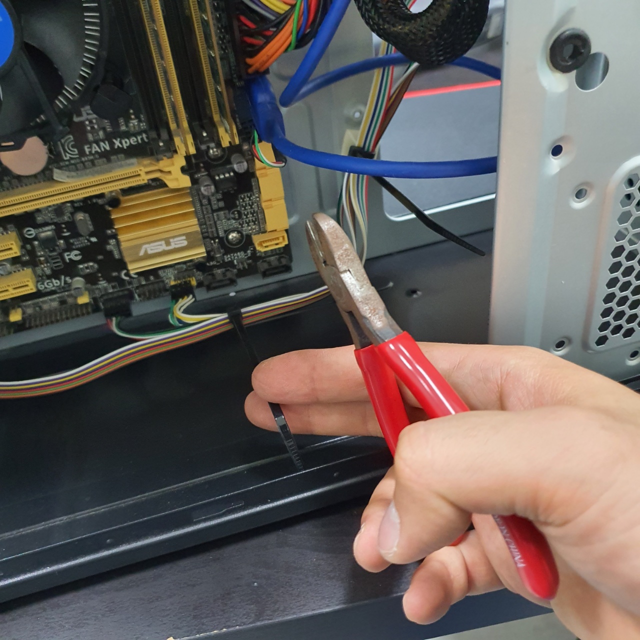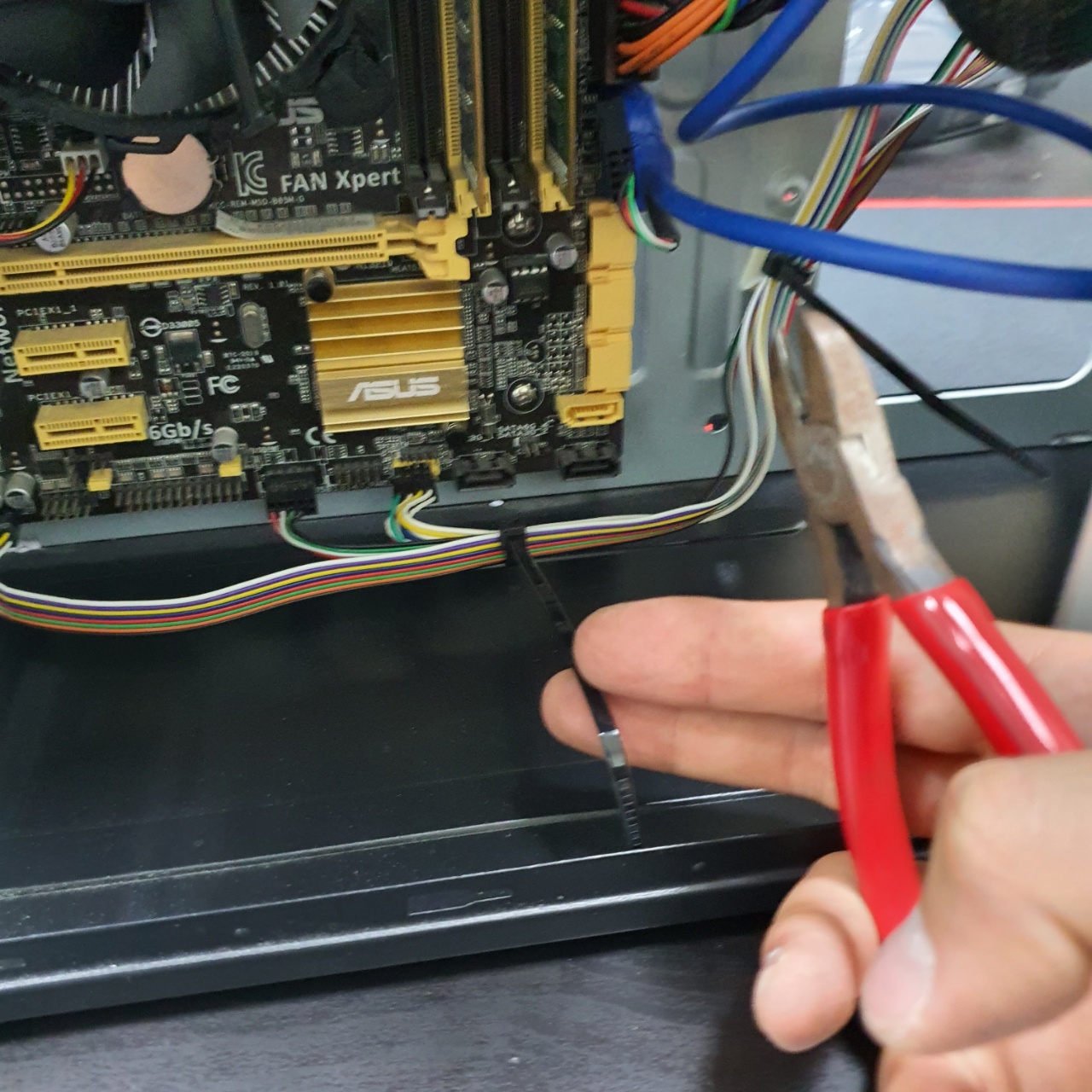 선정리로 케이블타이와 같은 결속장치가 있다면 니퍼를 통해 끊어준다.