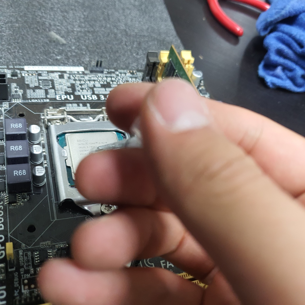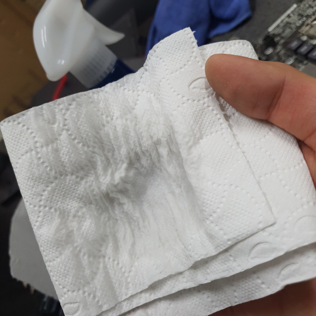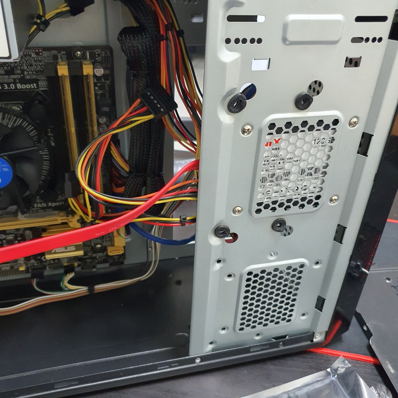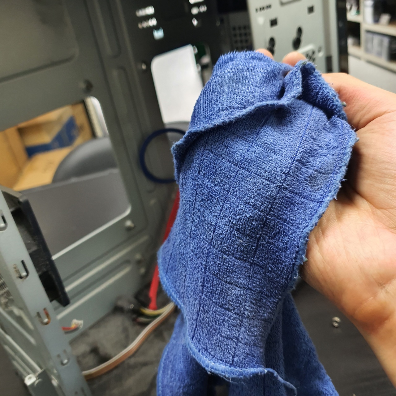 다음은 메인보드를 받쳐두기위해 부직포와같은 것을 바닥에 두고 위에 메인보드를 올려둔다.