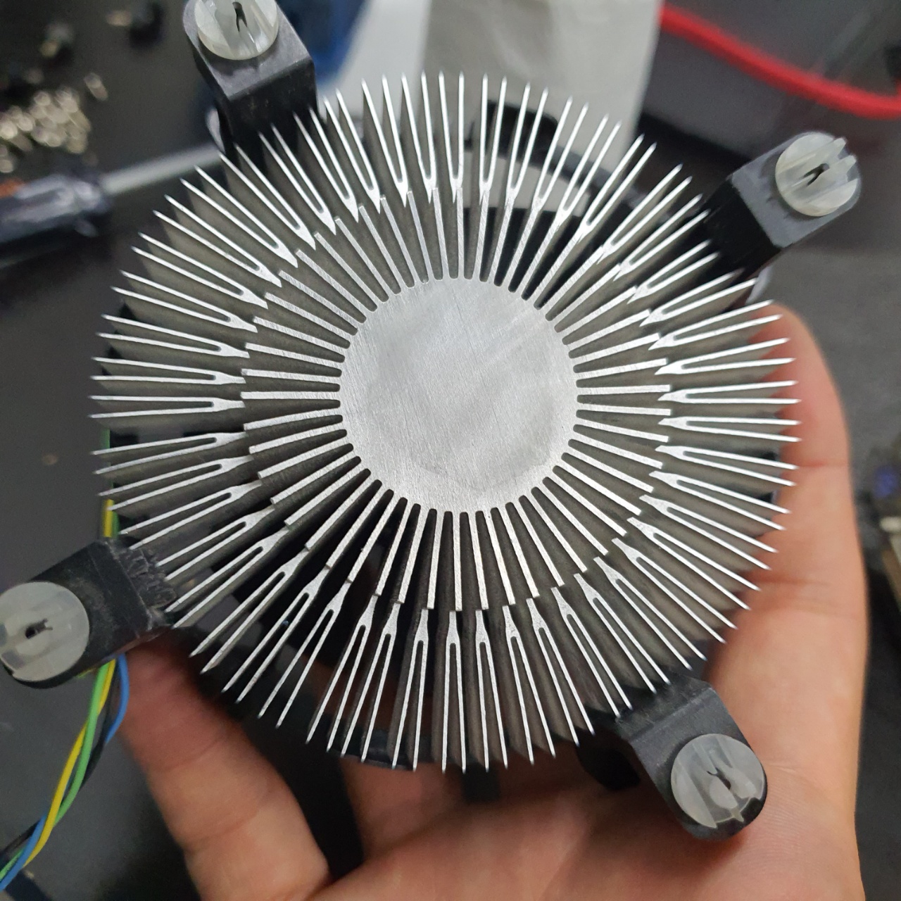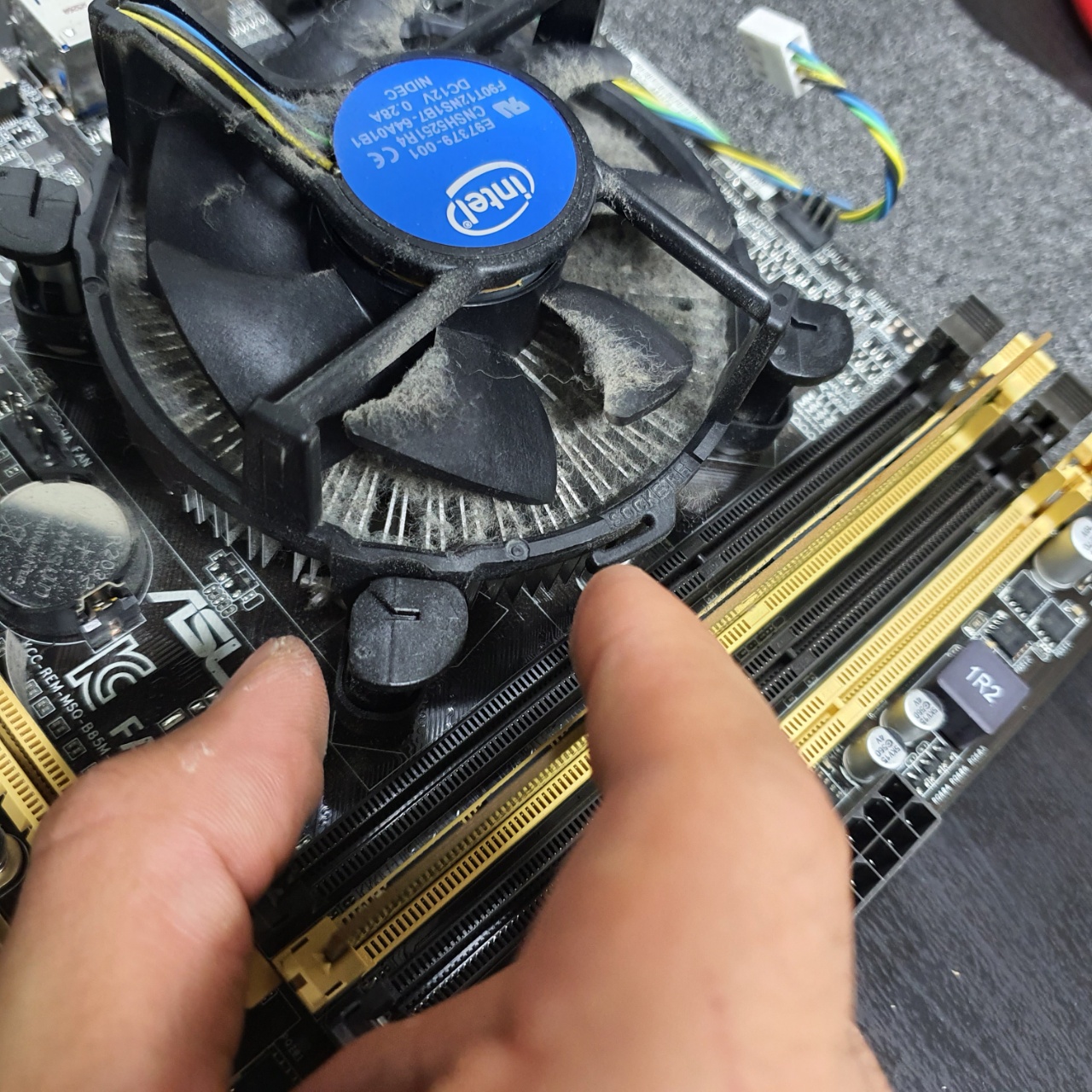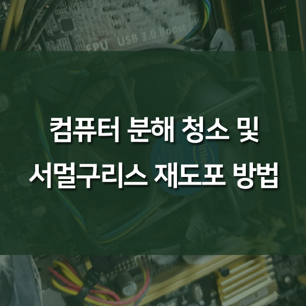 CPU 쿨러는 CPU의 발열을 직접적으로 해소시켜주므로 쿨러또한 해체하여 먼지를 제거한 뒤, 서멀구리스를 재 도포하여 주도록 한다.