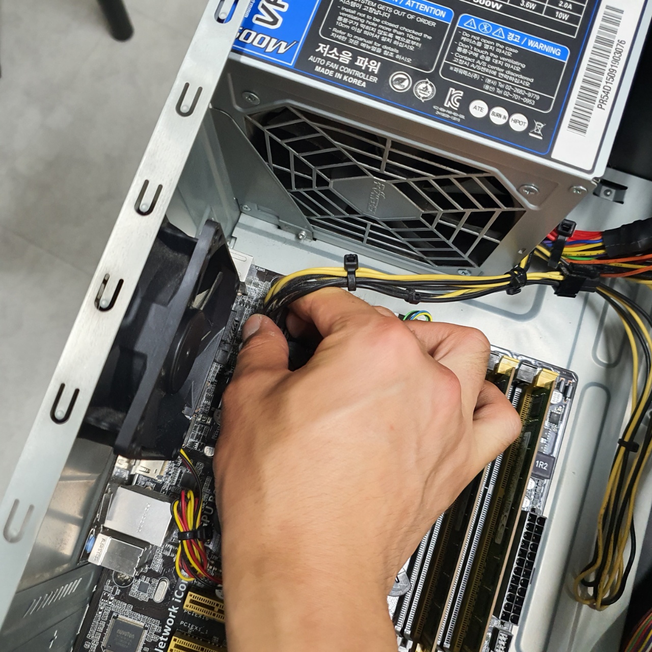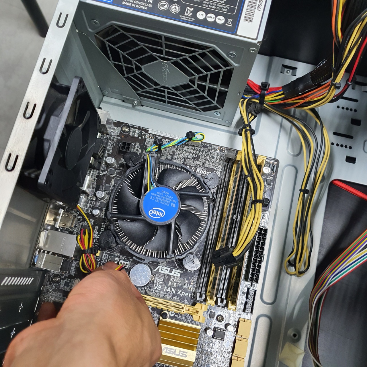 파워서플라이의 전원케이블은 반드시 해체한 뒤, 메인보드나 CPU 메인보드 연결선을 해체하여 준다.