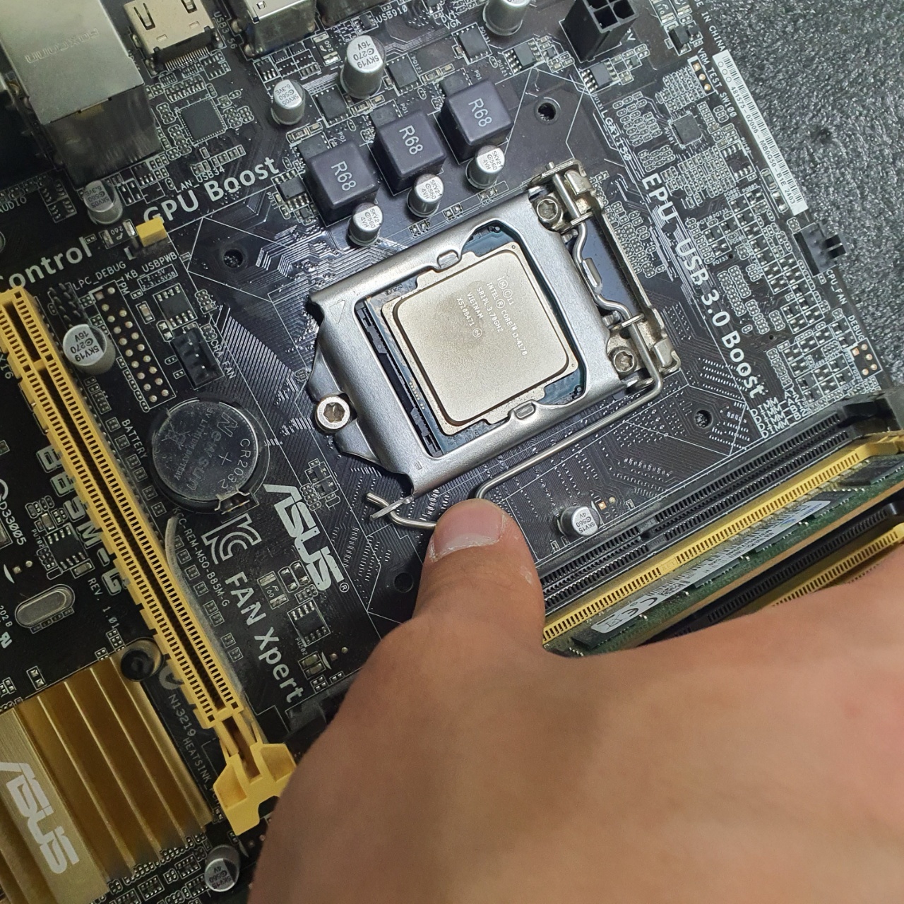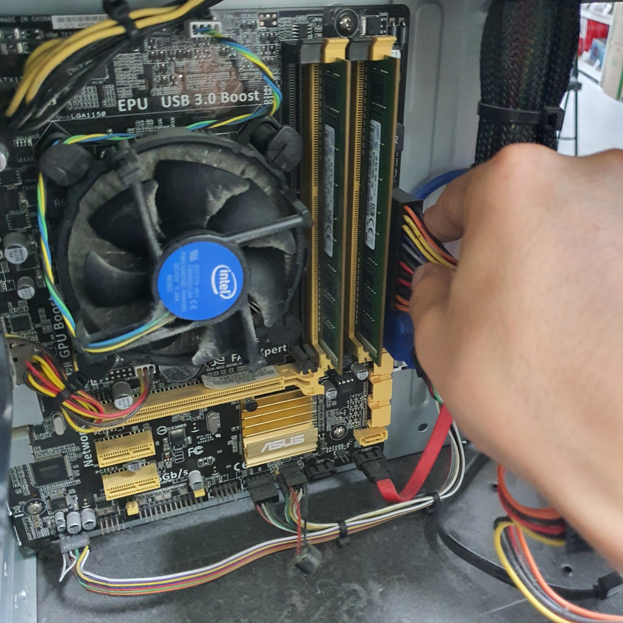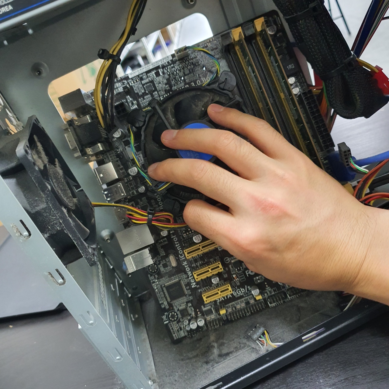먼지제거를 통해 아주 깔끔해진 메인보드의 상황