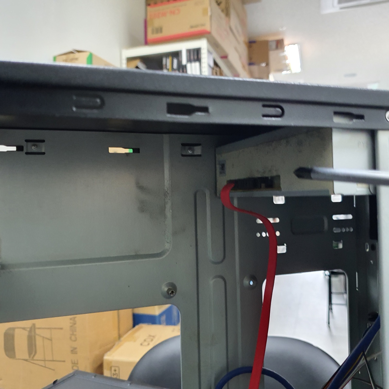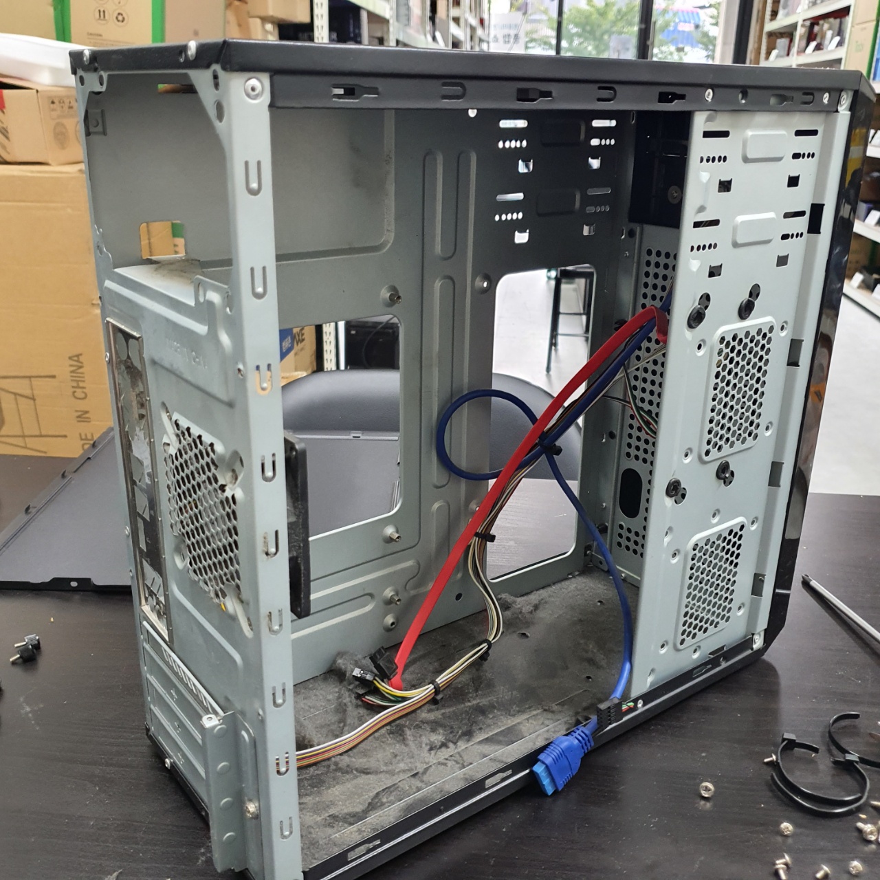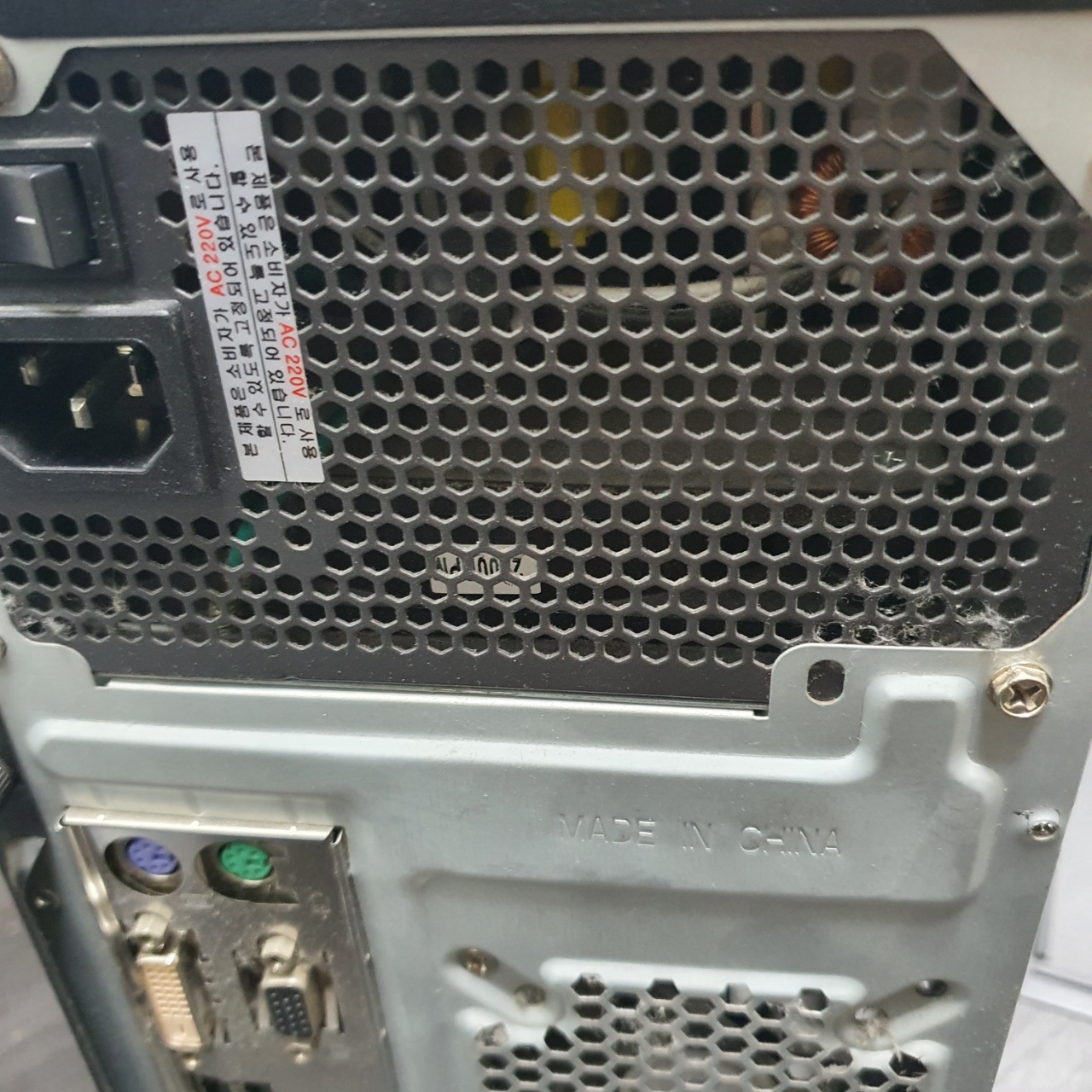 데스크톱의 겉부분, 몇년간 사용만하고 방치되어있어 겉부분 마저도 먼지가 잔뜩 끼어 있다.