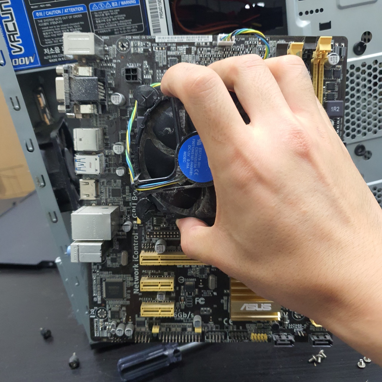 그다음 메인보드를 살살 움직여 케이스에서 꺼내주도록 한다.