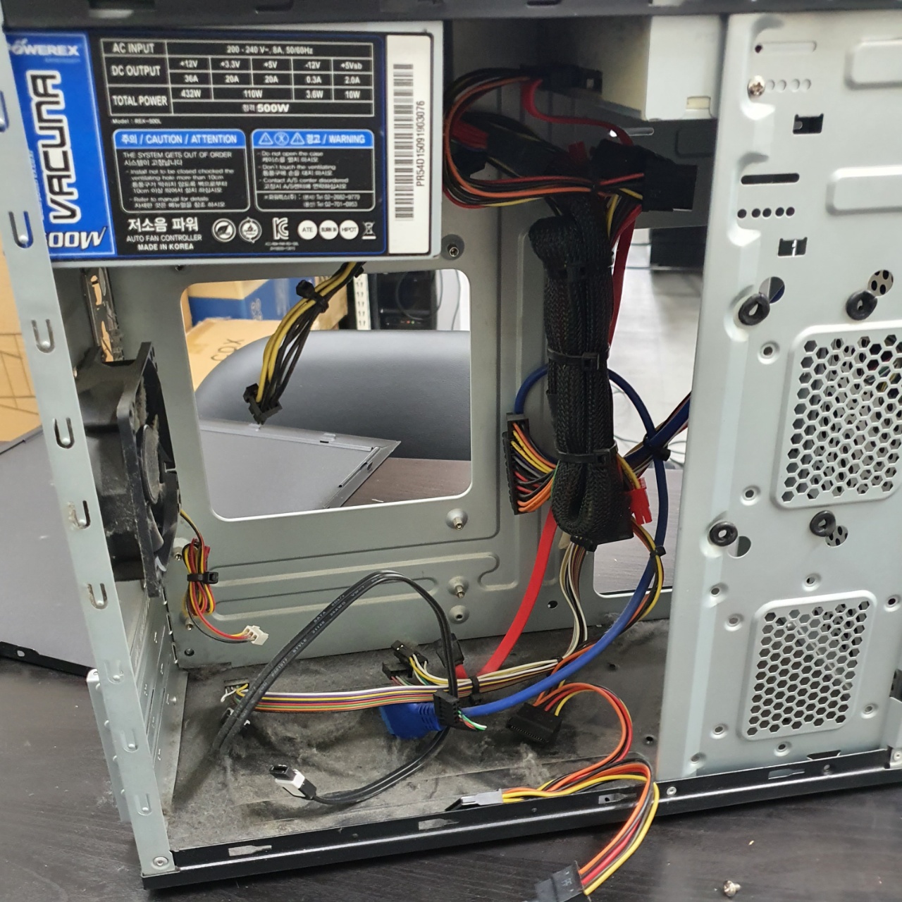 파워서플라이는 가급적 분해하지않고 먼지제거제를 통해 안쪽면만 불어준 뒤, 가급적 그냥 사용하는편이 좋다.