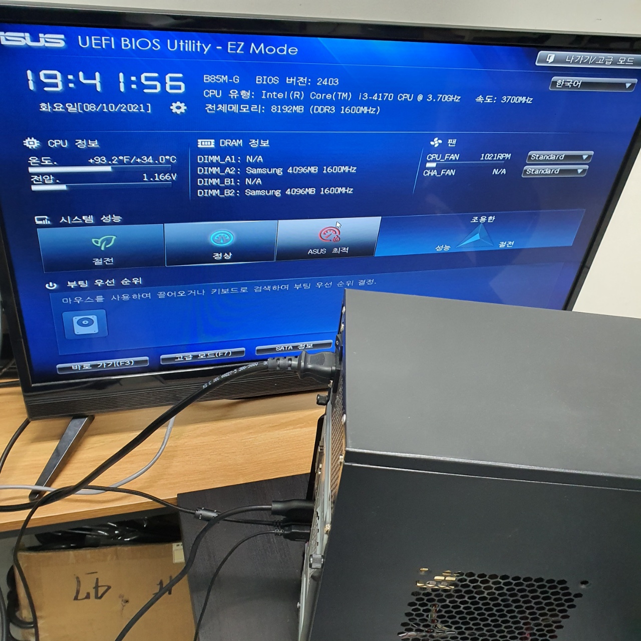 바이오스 화면이 뜬다면 정상적으로 청소가 완료된것이고, 저장장치를 교체하였으므로 새로이 운영체제를 설치하여주면 정비는 끝이난다.
