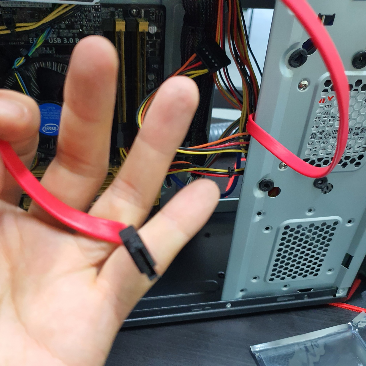 저장장치의 연결은 SATA 케이블의 연결과 파워서플라이의 전원공급 케이블만 정확하게 연결해주면 끝이난다.