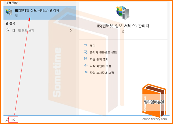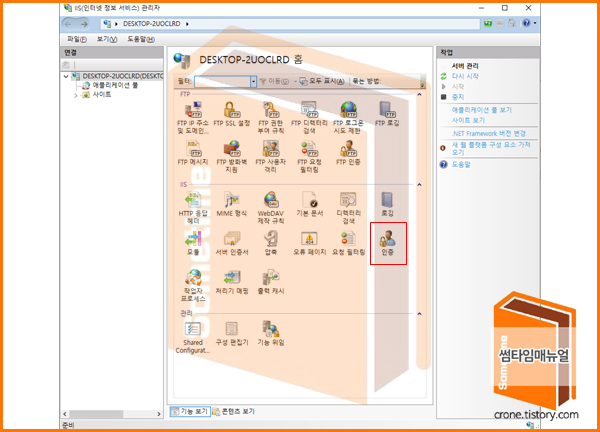 웹 관리 도구 -> IIS 관리 콘솔