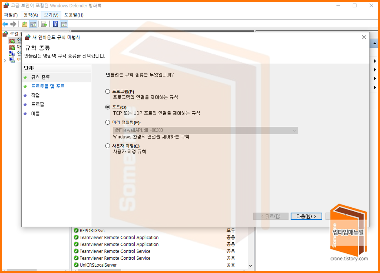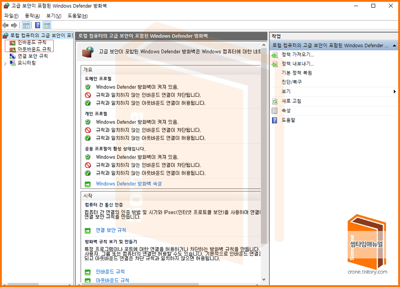 Windwos Defender 방화벽 설정 창으로 이동한다.