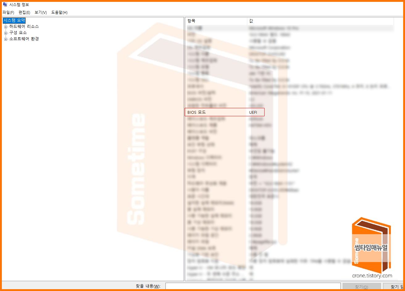 시스템 정보 -> 시스템 요약 -> BIOS 모드