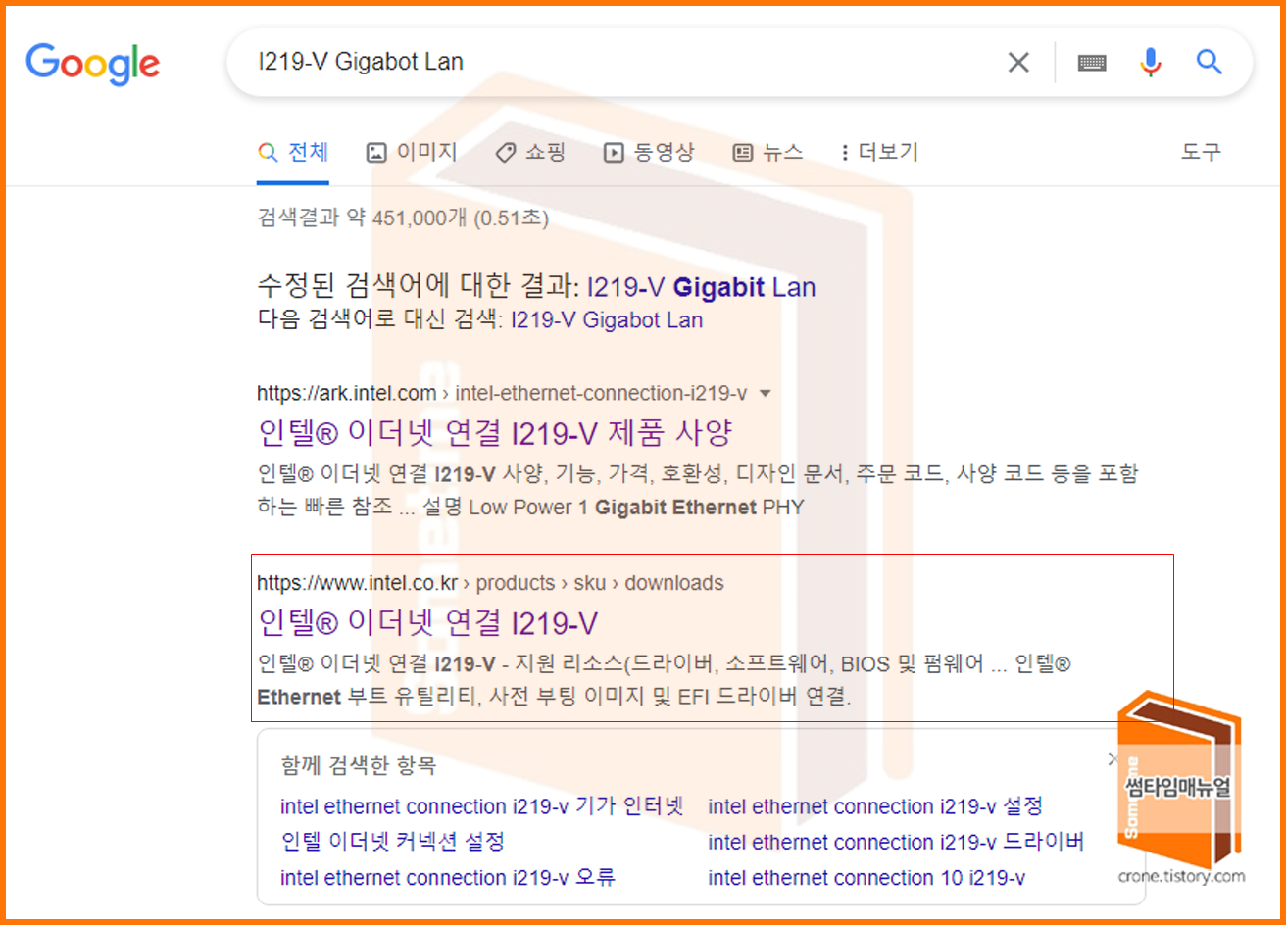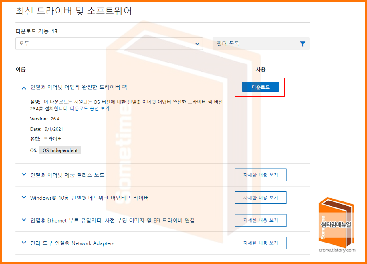 혹시나, 자신의 랜카드가 I219-V 모델이라면 아래의 링크로 바로 접속 하도록 하여 다운받도록 하자