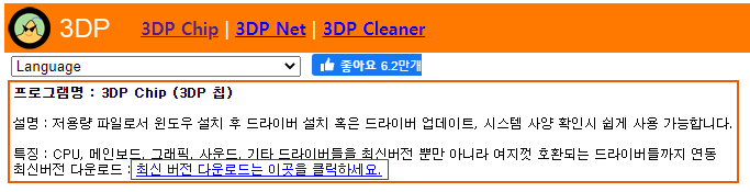 위의 사이트를 접속하여 3DP chip 프로그램을 다운받는다.