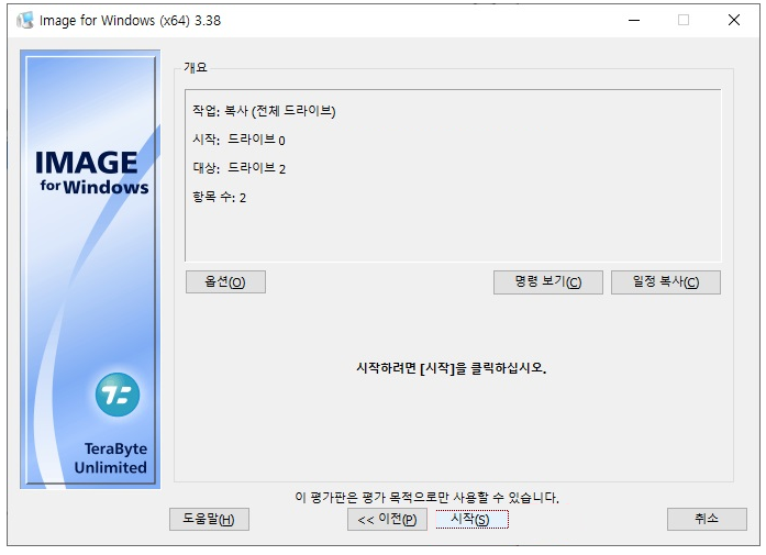 한번 더 작업의 시작을 수행할것인지를 물어보며, "시작" 버튼을 누른다면 다음으로 진행된다.
