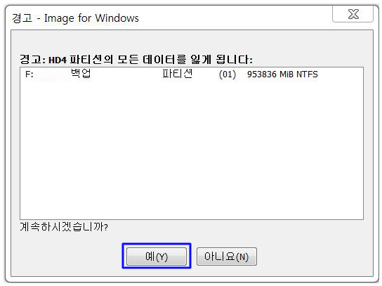 다음은 복사대상인 디스크를 선택하여 Next 를 눌러준다면 아래와같은 경고창이 뜰수 있으며 "예" 를 눌러 진행하도록 한다.